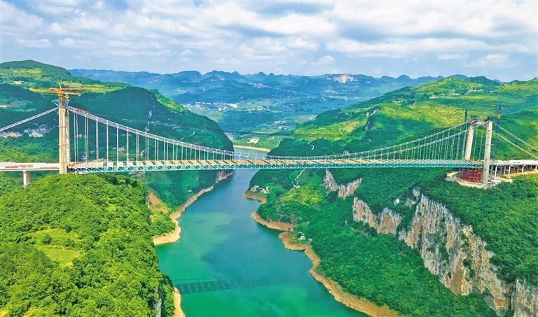 7月10日,金烽乌江大桥成功合龙。该大桥是贵阳经金沙至古蔺(贵金古)高速公路项目的重要控制性工程,全长1473.5米,大桥的合龙为贵金古高速公路明年通车打下了坚实基础。邓 刚摄(中经视觉)