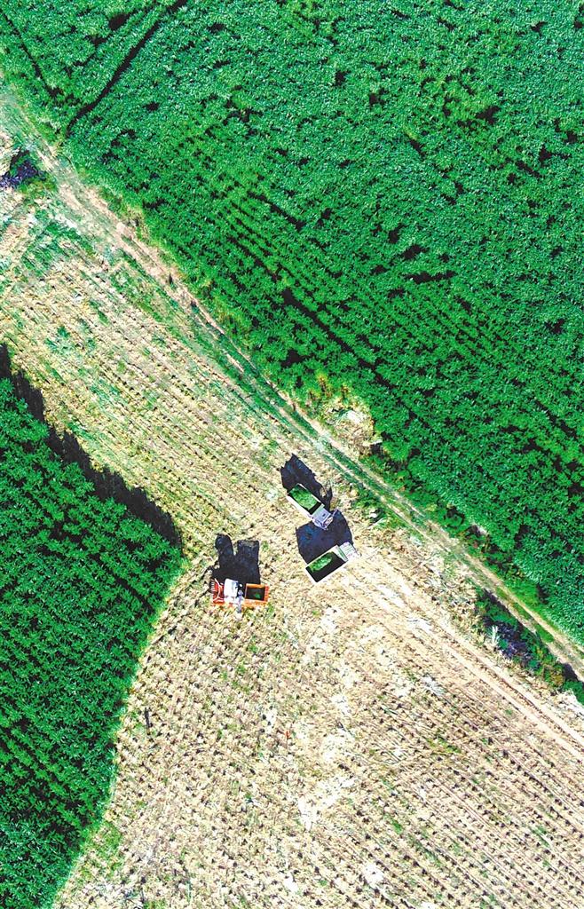 7月15日,农民在云南省大理州巍山县巨菌草种植基地收割牧草。当地千余亩巨菌草喜获丰收,预计总产量达2.5万吨。近年来,当地优化调整农业产业结构,发展牧草产业,促进农民就业增收。