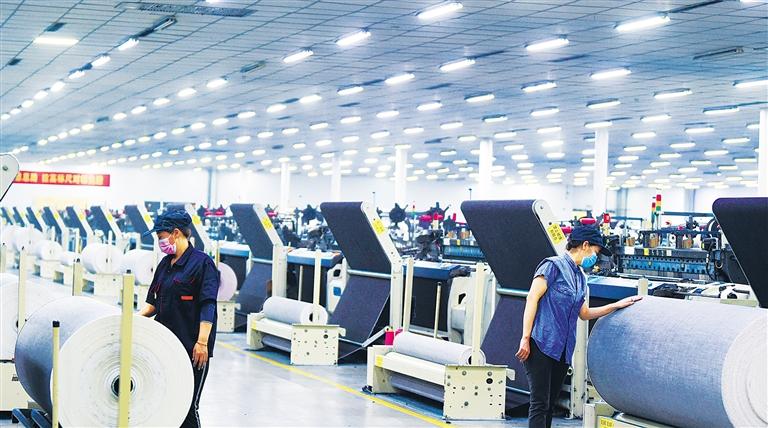7月23日,河北省邢台经济开发区,邢台恒进纺织有限公司员工在检验出口面料的质量。近年来,邢台经济开发区通过完善产业链配套、推进智能化生产、打造区域品牌等一系列措施,助力外贸企业有序生产,满足海内外市场需求。