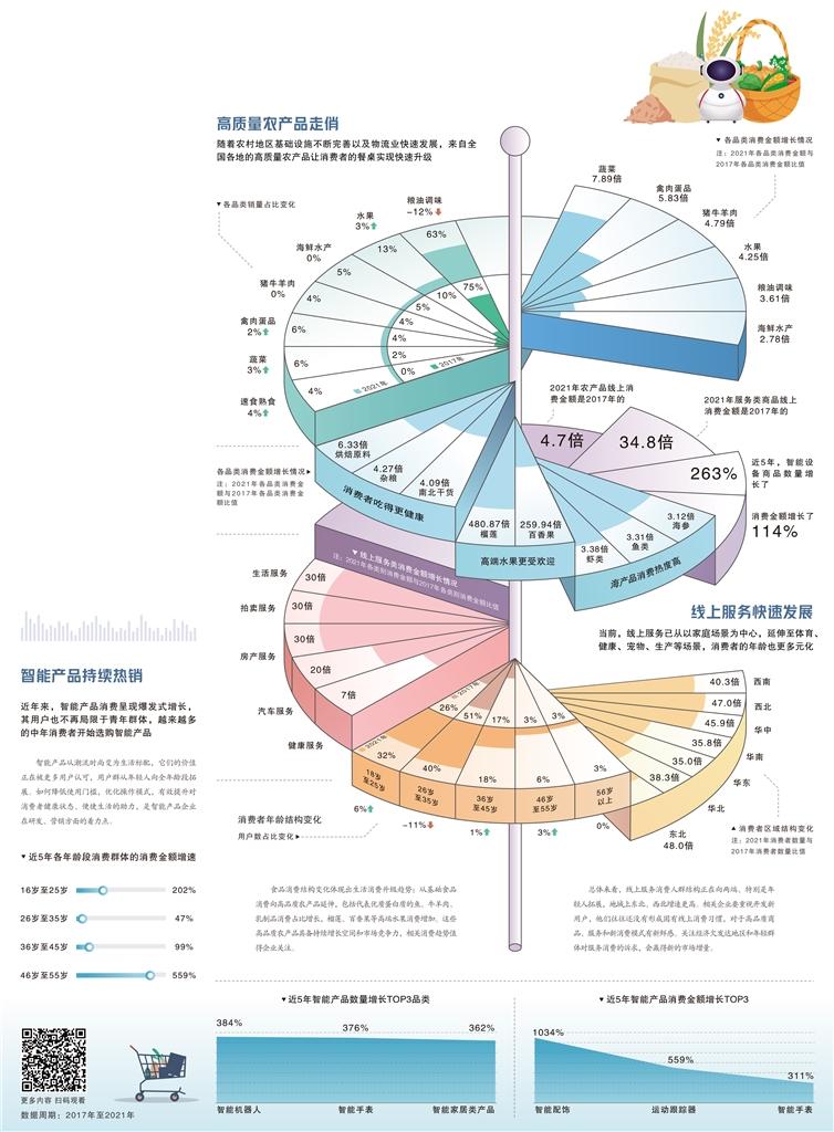 消费结构变化是消费升级的重要标志。精神消费、健康消费、绿色消费、智能消费、服务消费占比不断增加,代表着消费者对美好生活的向往和追求。