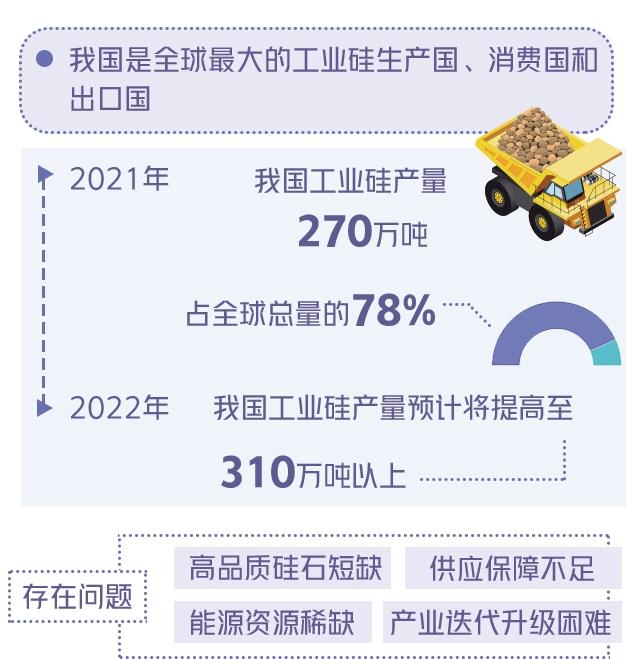 “我国是全球最大的工业硅生产国、消费国和出口国,但是存在高品质硅石短缺、供应保障不足、能源资源稀缺、产业迭代升级困难的现实。”段德炳说。据统计,2021年国内工业硅装置产能达到500万吨/年,生产企业200家左右,大部分企业规模不足2万吨/年,整个行业呈现小而散的特点。此外,季节对工业硅行业生产影响较大,南方地区水电资源丰富,工业硅企业利用丰水期相对较低的电价进行季节性生产,部分装置产能因此阶段性闲置。