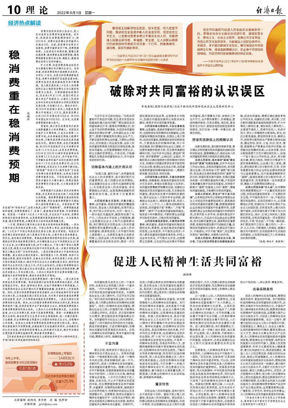 “治国之道,富民为始”。共同富裕是社会主义的本质要求,是中国式现代化的重要特征,是人民群众的共同期盼。在全面建设社会主义现代化国家新征程上,扎实推进全体人民共同富裕,首先要破除认识误区,全面准确地理解和把握其深刻内涵,这具有十分重要的意义。