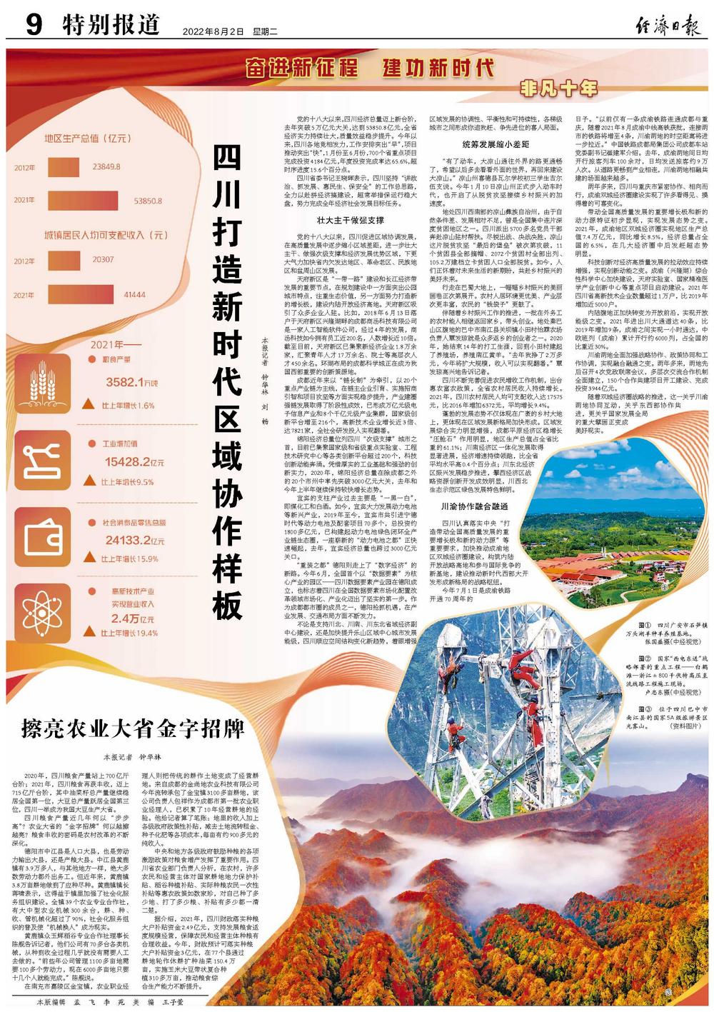 2020年,四川粮食产量站上700亿斤台阶;2021年,四川粮食再获丰收,迈上715亿斤台阶,其中油菜籽总产量继续稳居全国第一位,大豆总产量跃居全国第三位,四川一举成为我国大豆生产大省。