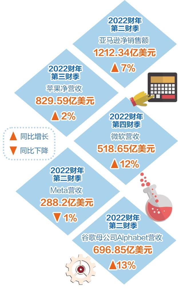 最新数据显示,美国经济连续两个季度负增长,陷入技术性衰退,美国国内对于经济衰退的担忧正在升温。上周,谷歌母公司Alphabet、微软、Meta、苹果、亚马逊五大科技巨头先后公布最新季度财报,其中透露的信息,也表明美国经济前景难言乐观。