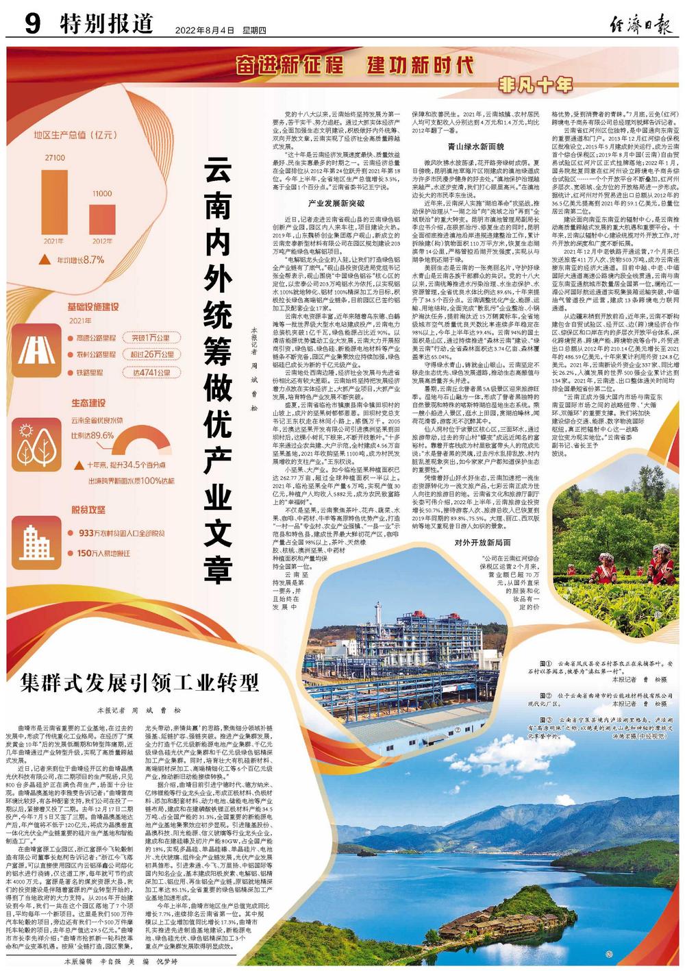 云南水电资源丰富,近年来随着乌东德、白鹤滩等一批世界级大型水电站建成投产,云南电力总装机突破1亿千瓦,绿色能源占比近90%。以清洁能源优势撬动工业大发展,云南大力开展招商引资,绿色铝、绿色硅、新能源电池材料等产业链条不断完备,园区产业集聚效应持续加强,绿色铝硅已成长为新的千亿元级产业。