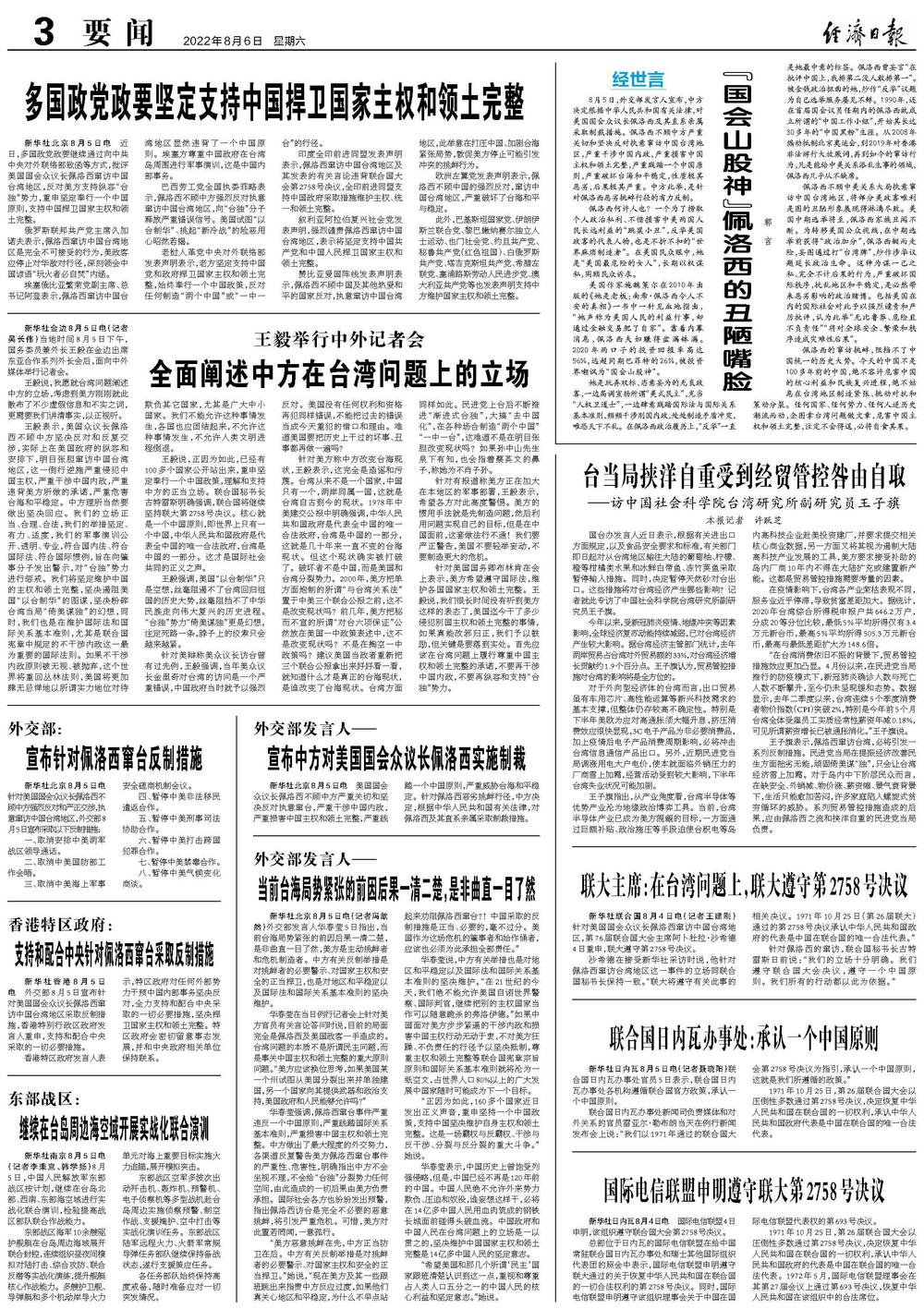 “正因为如此,160多个国家近日发出正义声音,重申坚持一个中国政策,支持中国坚决维护自身主权和领土完整。这是一场霸权与反霸权、干涉与反干涉、分裂与反分裂的重大斗争。”她说。