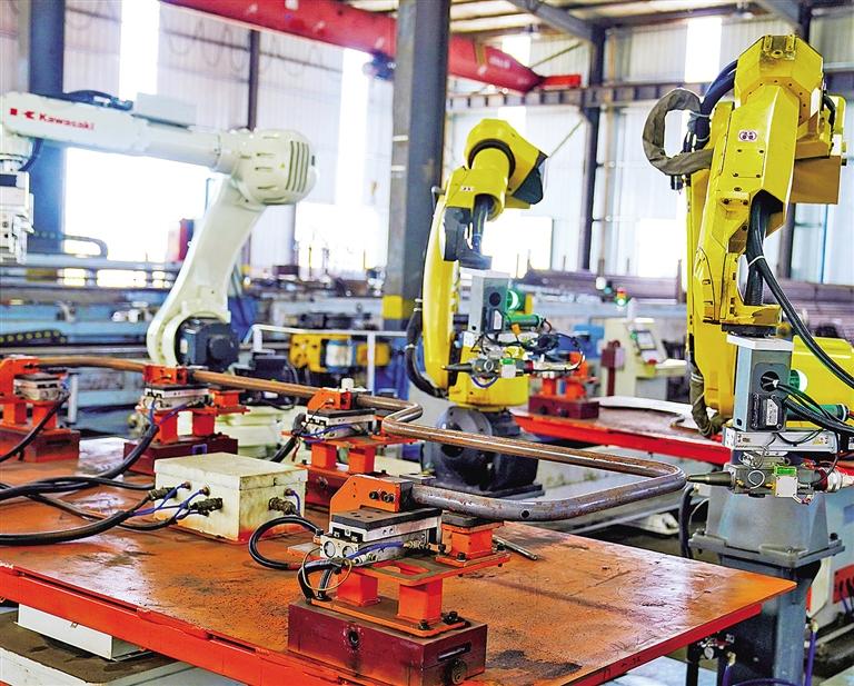 近日,江西增鑫科技股份有限公司焊装生产车间,机械臂在进行自动焊接作业。今年以来,江西做强做优数字经济“一号工程”,大力实施制造业智能升级,围绕5G应用、工业物联网等新兴领域布局建设一批“智能工厂”“数字化车间”,推动产业转型升级。