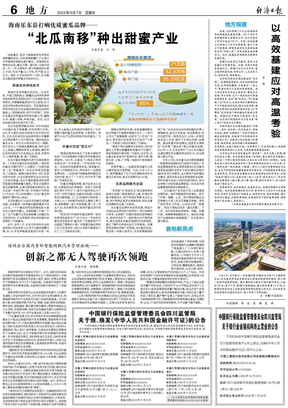 乐东蜜瓜品牌的形成和发展,得益于当地社会各界的努力和呵护。“我们加强技术指导,全面推广大棚及绿色防控种植技术,制定并形成了一套标准化生产规范体系,牵头注册乐东蜜瓜地理标志证明商标,建立了集约化标准化生产示范基地。统筹原先品牌各自推广的局面,成立蜜瓜协会,制定统一的推介宣传片,在央视等频道投放广告。”乐东县农业农村局种植岗负责人黄维毅说,通过对包装盒、专店营销店、快闪店进行统一规划及设计,以统一的视觉体系进入市场,提升了市场认知度、品牌度。重品质重市场品牌化,促使乐东涌现出“求雨香”“蜜瓜妹”等众多蜜瓜品牌。2021年11月,乐东还举行了2021乐东蜜瓜全国品牌发布会暨招商启动仪式,在全国推介蜜瓜产品。