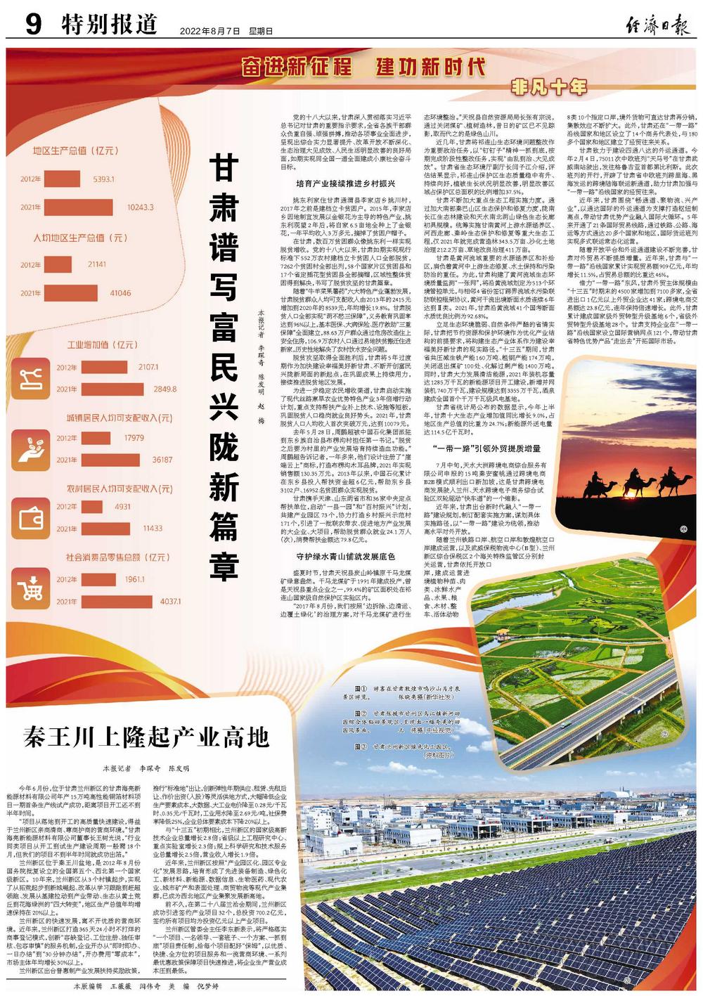 为进一步稳定农民增收渠道,甘肃启动实施了现代丝路寒旱农业优势特色产业3年倍增行动计划,重点支持帮扶产业补上技术、设施等短板,巩固脱贫人口稳岗就业良好势头。2021年,甘肃脱贫人口人均收入首次突破万元,达到10079元。