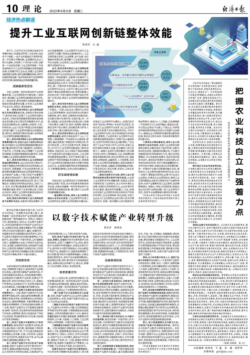 在实际行动中,坚持农业科技自立自强,既需要稳定的发展机制作支撑,又需要完善的科技创新服务体系作保障;既要破解农业数字技术研发能力薄弱这一主要问题,又要抓住农业科技基础设施建设这一重点,系统协同推进,全面提升农业科技引领发展的能力。