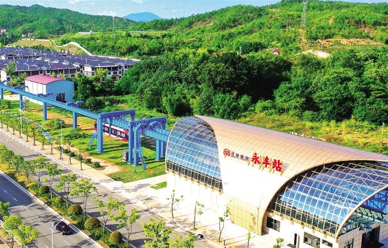 8月9日,国内首条稀土永磁磁浮轨道交通工程试验线——“红轨”在江西兴国县正式竣工,实现将稀土永磁磁浮技术与空轨技术结合,建成中低速、中低运量的新制式轨道交通系统。“红轨”最高设计运行速度为每小时80公里,不仅适用于城市、景区、机场接驳、商务中心等环境,在沿江、环湖、海边、高寒、荒漠等也能使用,将助力绿色交通与低碳出行。熊红梅摄(中经视觉)