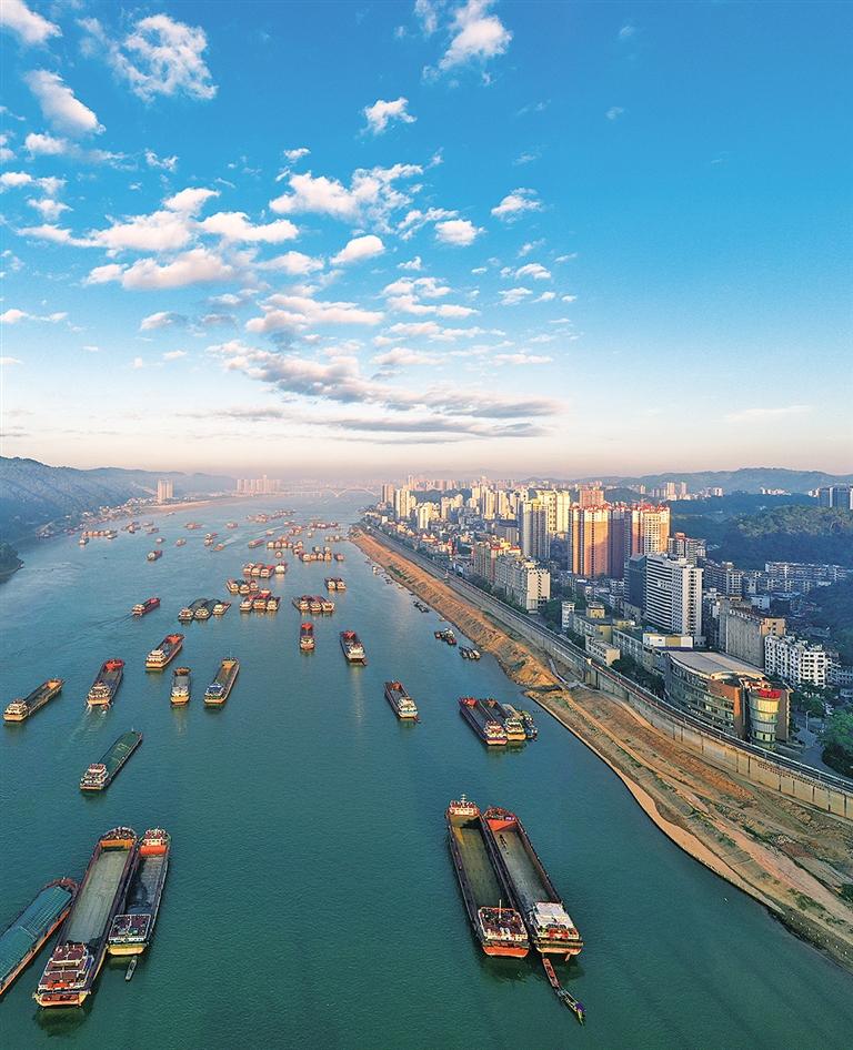 八月八日,广西梧州市西江江面上,货船汇集,水运繁忙。作为珠江流域重要水上门户,当地优化组织协调,确保水路畅通,保障物资运输。何华文摄(中经视觉)