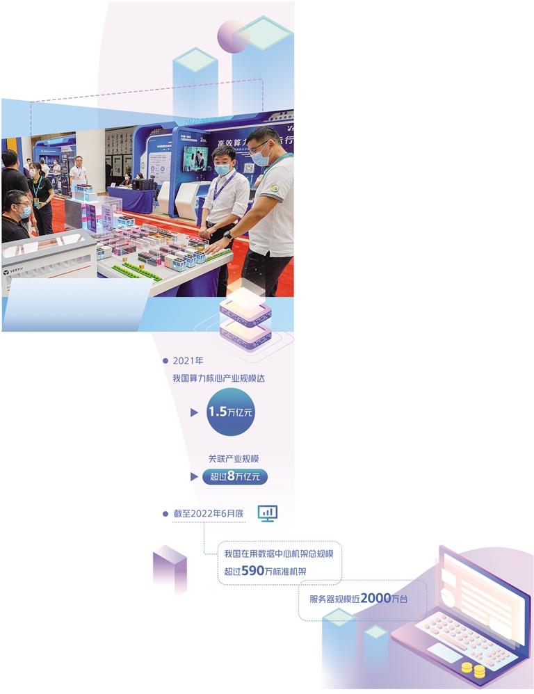 记者从近日举行的2022中国算力大会上获悉,截至今年6月底,我国在用数据中心机架总规模超过590万标准机架,服务器规模近2000万台,算力总规模超过150 EFLOPS(每秒15000京次浮点运算次数),位于全球第二位。2021年,我国算力核心产业规模达1.5万亿元,关联产业规模超过8万亿元;我国数据中心存储总容量达800EB(1EB=1024PB),全国先进存储使用占比约14%,对数据存储性能要求较高的一线城市先进存储占比最高达17%。