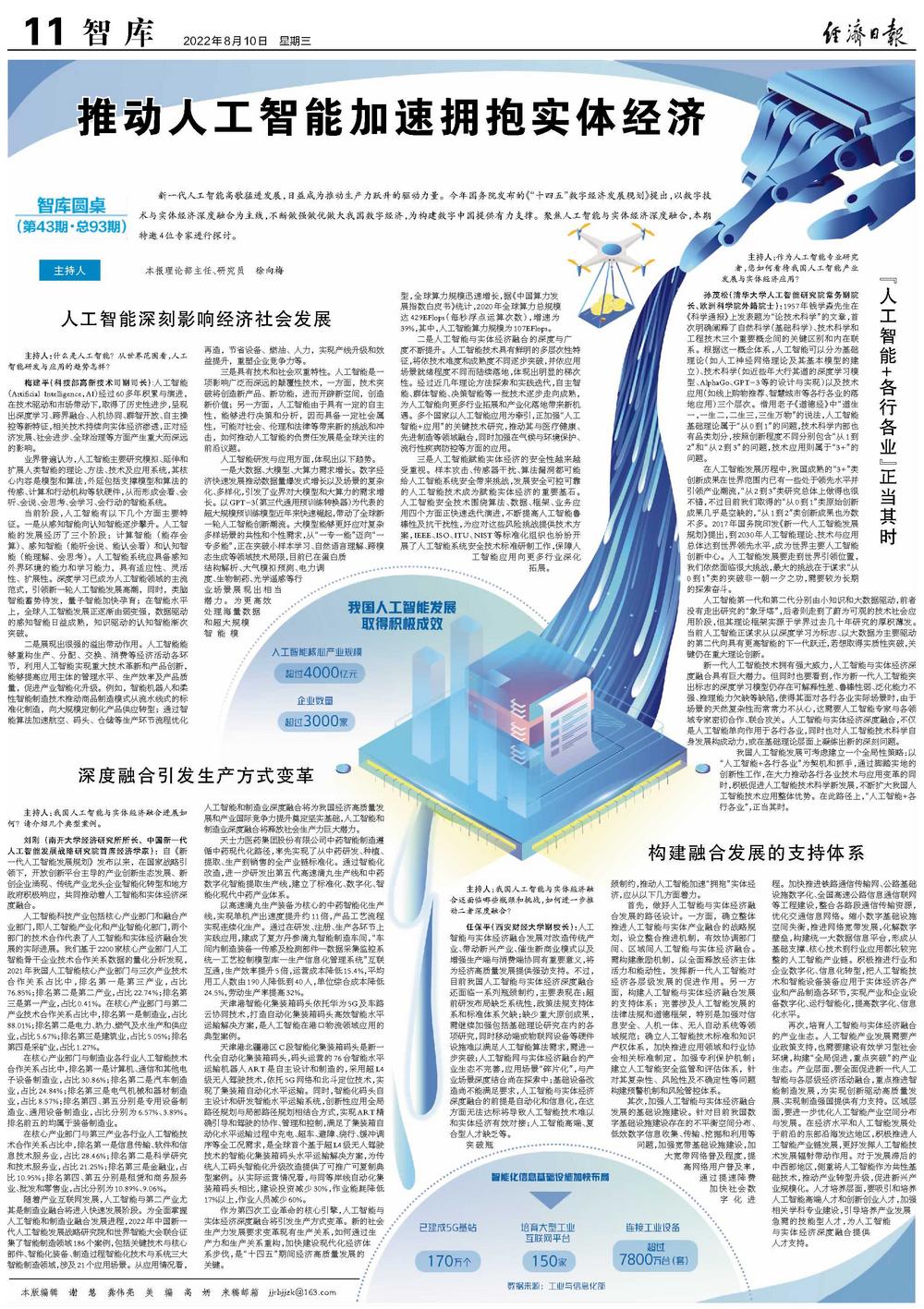 刘刚(南开大学经济研究所所长、中国新一代人工智能发展战略研究院首席经济学家):自《新一代人工智能发展规划》发布以来,在国家战略引领下,开放创新平台主导的产业创新生态发展、新创企业涌现、传统产业龙头企业智能化转型和地方政府积极响应,共同推动着人工智能和实体经济深度融合。