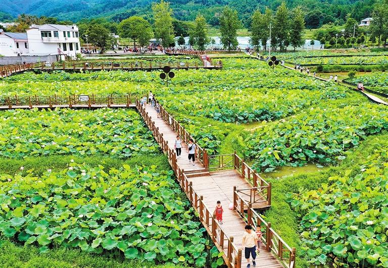 8月2日,江西省赣州市全南县各地荷花竞相绽放,吸引了众多游客慕名而来。今年以来,全南县因地制宜,充分依托生态、产业、区位等优势,积极做好“旅游+”文章,丰富农旅融合活动,多措并举激活节假日旅游消费市场。 李凡钦摄(中经视觉)