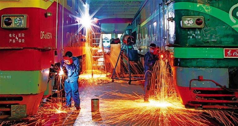 8月10日,广州机务段检修车间电焊组员工正在对机车关键部位进行焊接抢修作业。