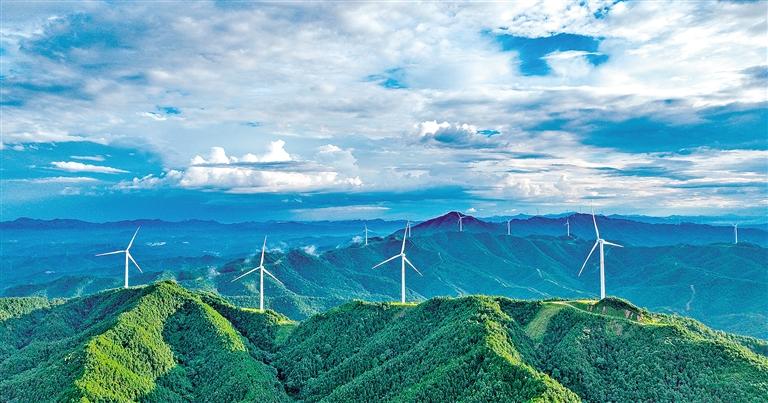 近日,在江西省赣州市章贡区沙石镇王田村,一台台风力发电机矗立在群山之中,不断输送绿色电能,构成一幅清洁能源山中来的美丽画卷。胡江涛摄(中经视觉)