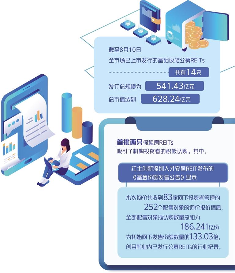 值得一提的是,首批两只保租房REITs吸引了各类机构投资者的积极认购。8月8日,红土创新深圳人才安居REIT发布的《基金份额发售公告》中显示,本次询价共收到83家网下投资者管理的252个配售对象的询价报价信息,全部配售对象拟认购数量总和为186.241亿份,为初始网下发售份额数量的133.03倍,创目前业内已发行公募REITs的行业纪录,投资者对于保租房REITs的热情可见一斑。