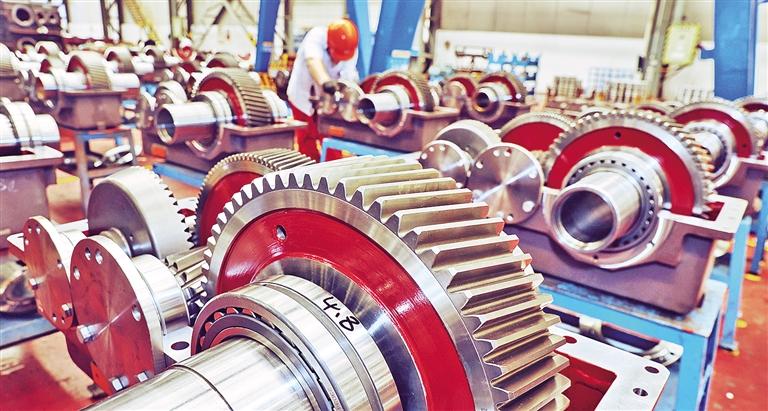 7月份,上海振华重工集团(南通)传动机械有限公司海上风电安装船抬升减速箱单月产出103套、海上风电安装船桩腿齿条焊接完成126根。目前,该公司正在加紧完成山东日照港、天津港、广西钦州港等一批港机大车类减速箱项目订单。图为工作人员在装配车间进行海上风电安装船抬升减速箱装配。