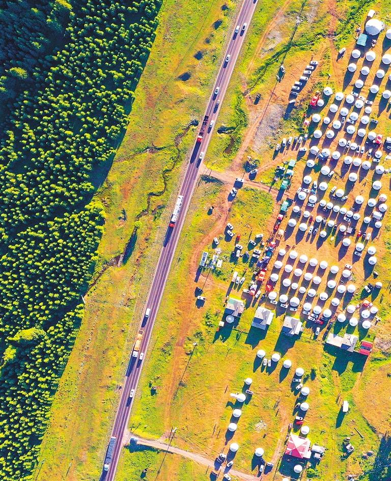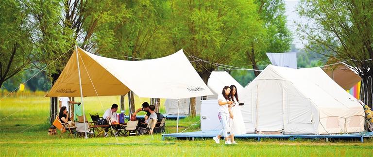 ③游客在陕西省神木市尔林兔大草原露营。近年来,当地大力发展以草原为主题的文旅产业,助民增收。