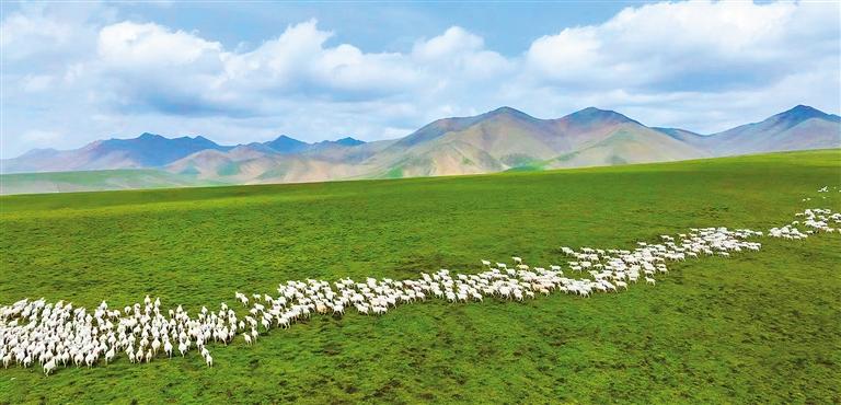 ④西藏昆仑山脚下一处草原,绿草如茵,风景如画。