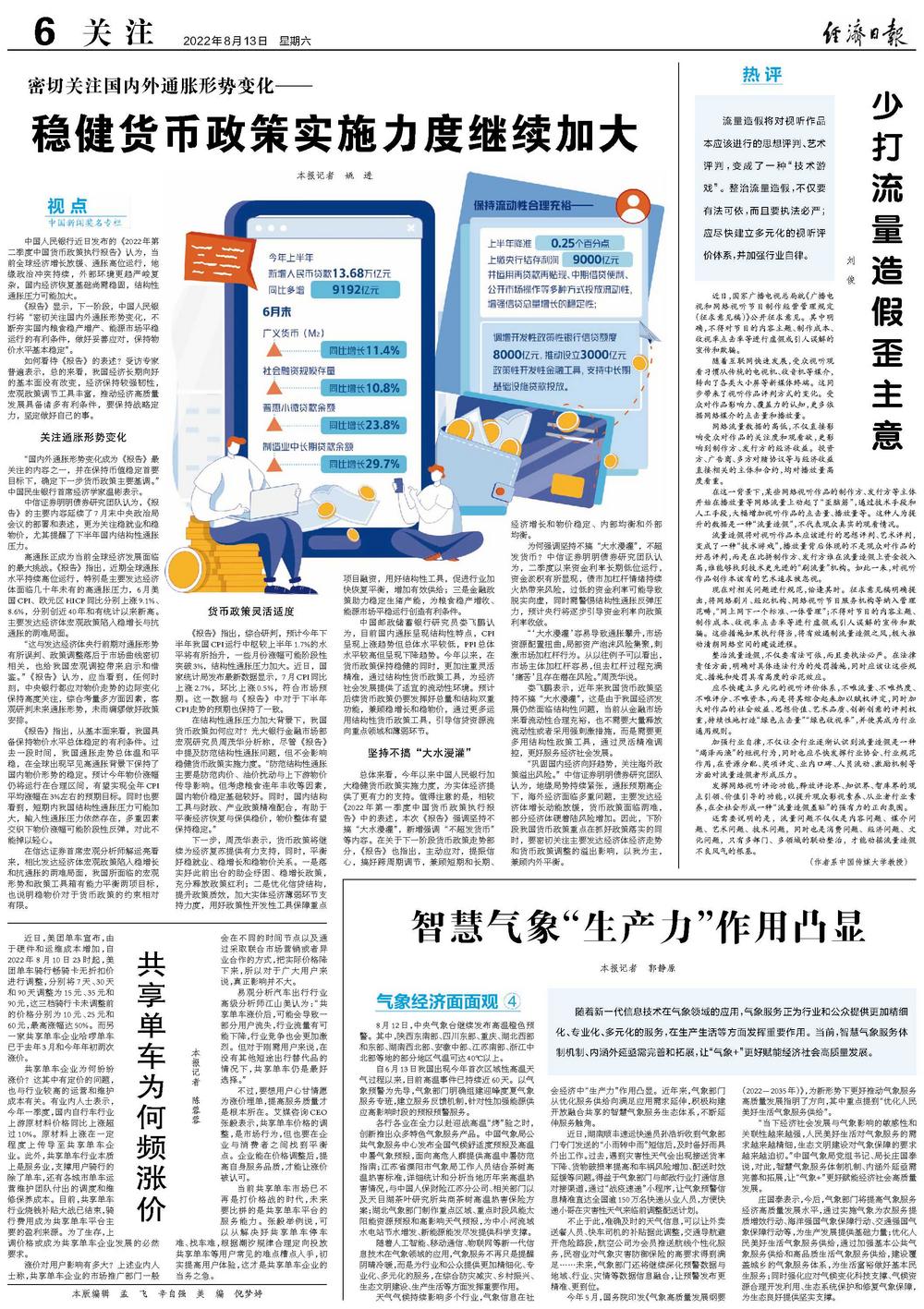 随着新一代信息技术在气象领域的应用,气象服务正为行业和公众提供更加精细化、专业化、多元化的服务,在生产生活等方面发挥重要作用。当前,智慧气象服务体制机制、内涵外延亟需完善和拓展,让“气象+”更好赋能经济社会高质量发展。