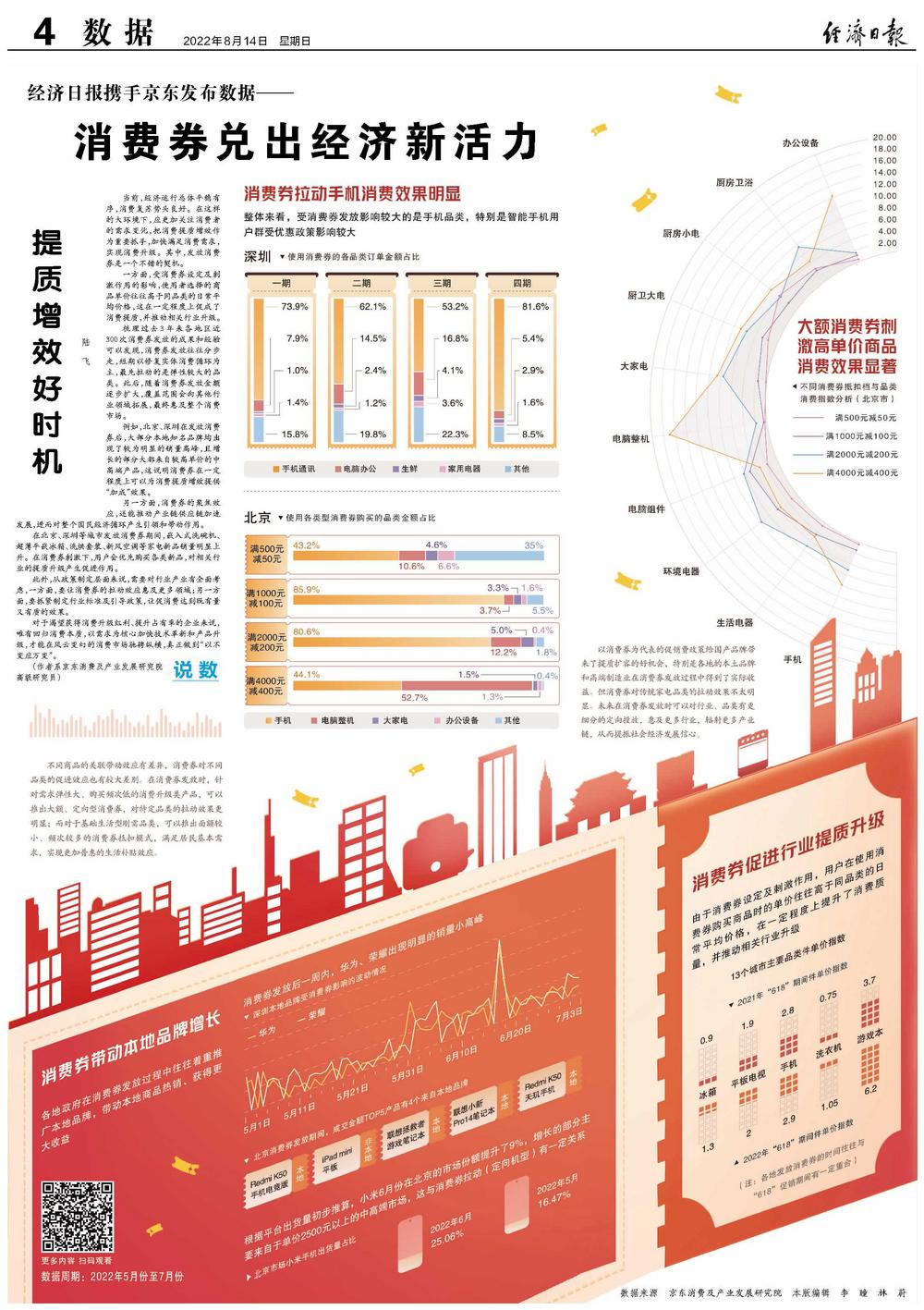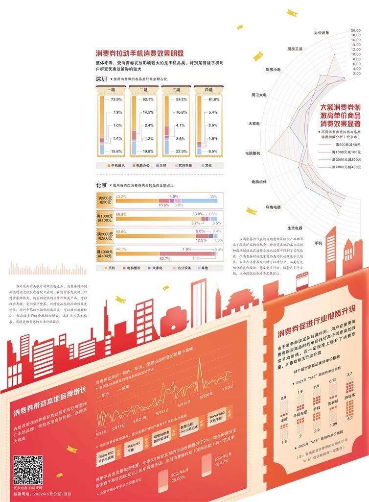 一方面,受消费券设定及刺激作用的影响,使用者选择的商品单价往往高于同品类的日常平均价格,这在一定程度上促成了消费提质,并推动相关行业升级。