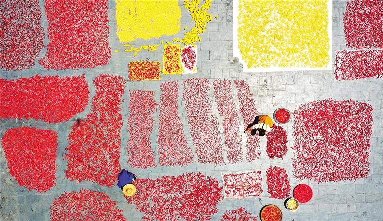 8月14日,贵州省从江县农民在晾晒农作物。初秋时节,当地辣椒、玉米等农作物喜迎收获,农民抓住晴好天气及时晾晒,绘就一幅美丽的乡村丰收图景。罗京来摄(中经视觉)
