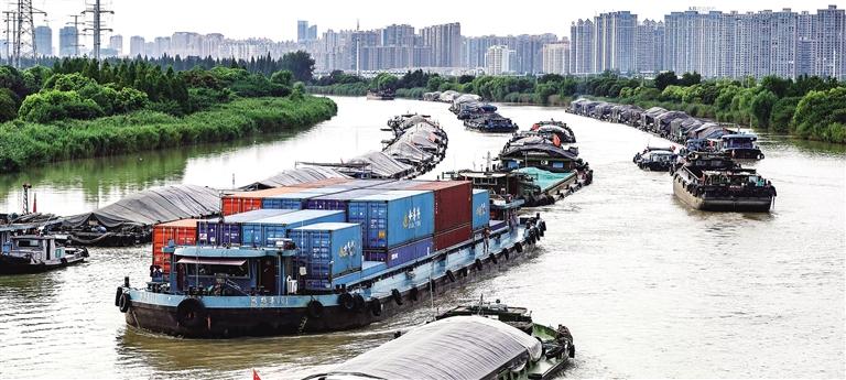 8月14日,京杭大运河江苏淮安段,货船往返穿梭。连日来,京杭大运河上运输粮食、煤炭、钢材等物资的船只往来不绝,全力保障高温天气下生产生活物资需求。赵启瑞摄(中经视觉)