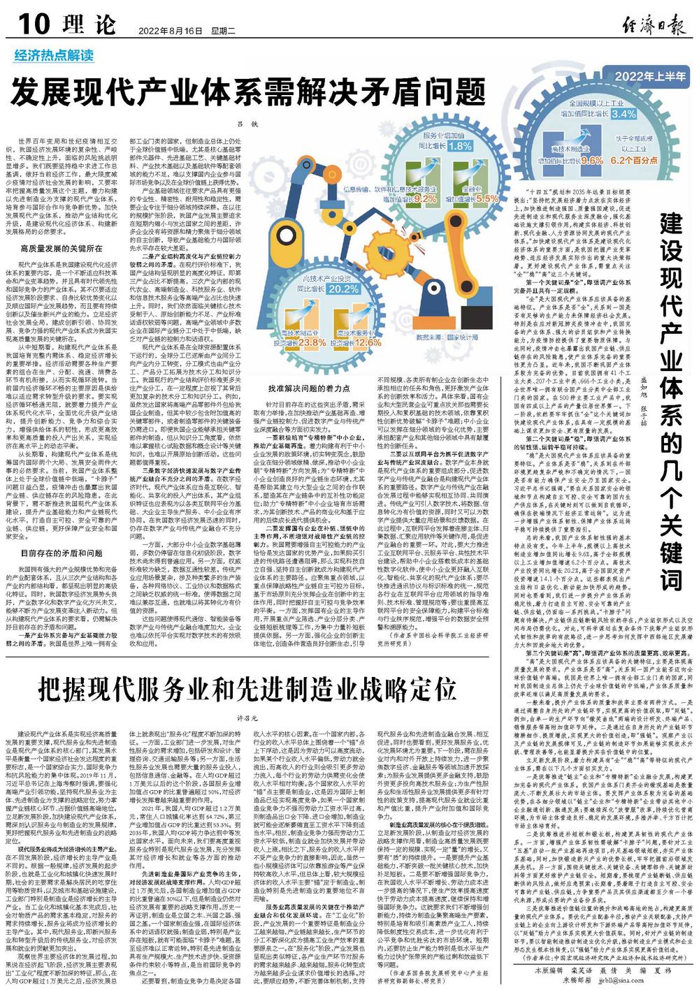 从长期看,构建现代产业体系是统筹国内国际两个大局、发展安全两件大事的必然要求。当前,我国产业体系整体上处于全球价值链中低端,“卡脖子”问题日益凸显,疫情冲击也暴露出我国产业链、供应链存在的风险隐患。在此背景下,需不断推进我国现代产业体系建设,提升产业基础能力和产业链现代化水平,打造自主可控、安全可靠的产业链、供应链,更好保障产业安全和国家安全。