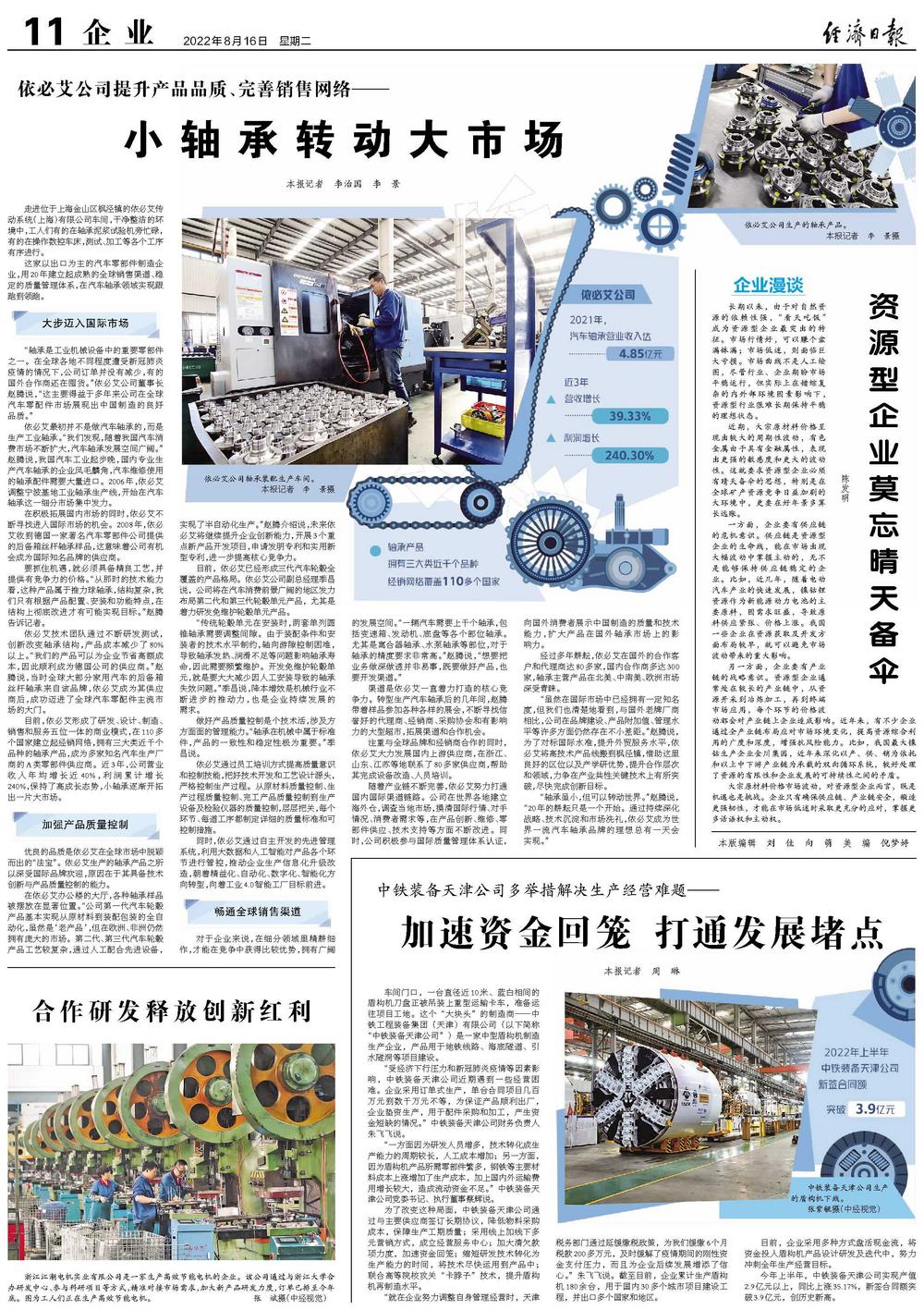 在依必艾办公楼的大厅,各种轴承样品被摆放在显著位置。“公司第一代汽车轮毂产品基本实现从原材料到装配包装的全自动化,虽然是‘老产品’,但在欧洲、非洲仍然拥有庞大的市场。第二代、第三代汽车轮毂产品工艺较复杂,通过人工配合先进设备,实现了半自动化生产。”赵腾介绍说,未来依必艾将继续提升企业创新能力,开展3个重点新产品开发项目,申请发明专利和实用新型专利,进一步提高核心竞争力。