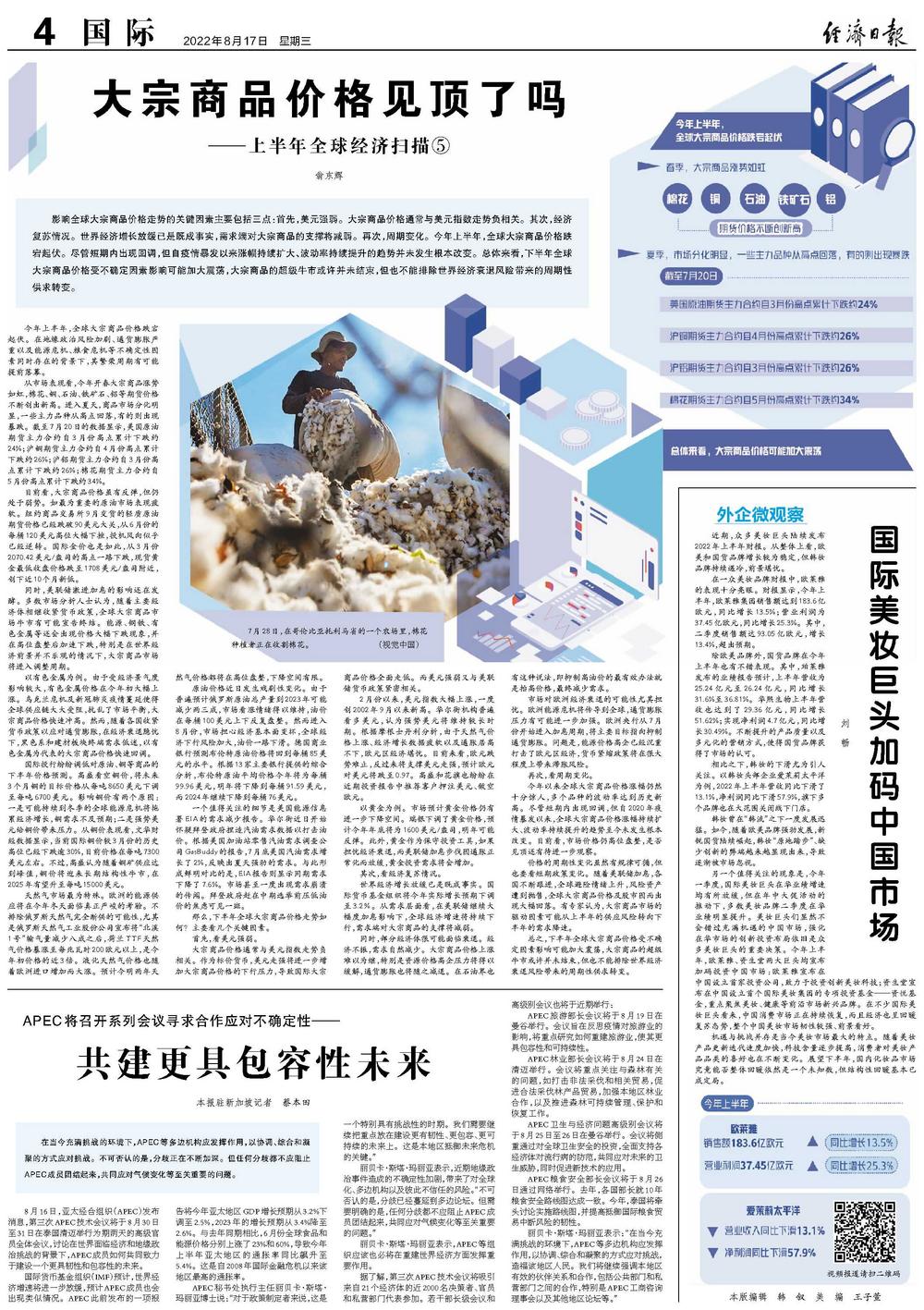 今年上半年,全球大宗商品价格跌宕起伏。在地缘政治风险加剧、通货膨胀严重以及能源危机、粮食危机等不确定性因素同时存在的背景下,其繁荣周期有可能提前落幕。