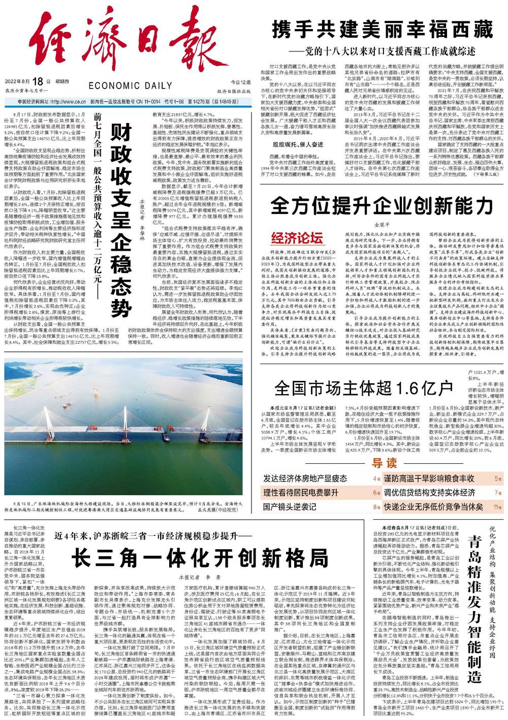 携手共筑增长极,服务新发展格局。长三角一体化的融通共赢,体现在每一个重大项目里,更表现在百姓的生活变化中。