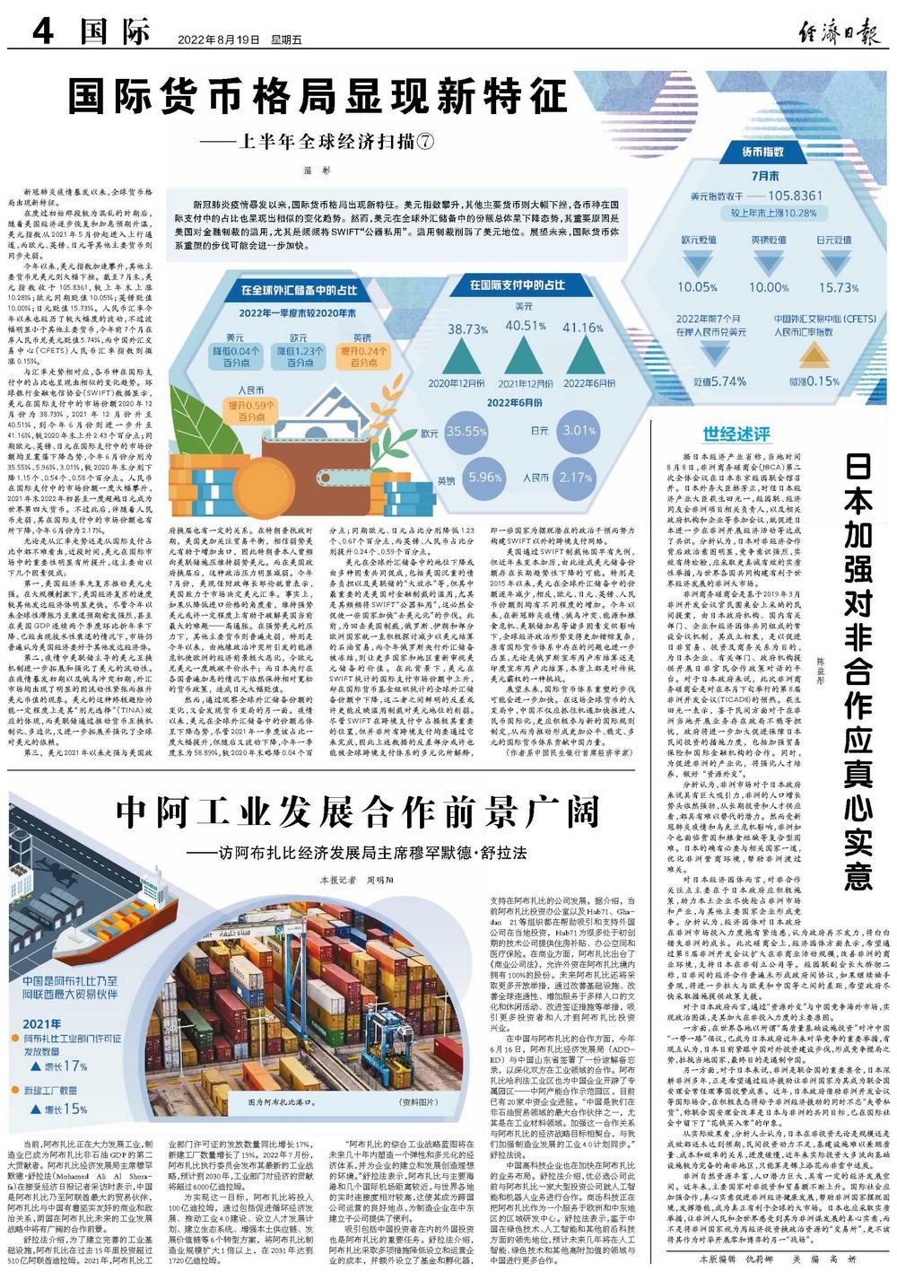 当前,阿布扎比正在大力发展工业,制造业已成为阿布扎比非石油GDP的第二大贡献者。阿布扎比经济发展局主席穆罕默德·舒拉法(Mohamed Ali Al Shorafa)在接受经济日报记者采访时表示,中国是阿布扎比乃至阿联酋最大的贸易伙伴,阿布扎比与中国有着坚实友好的商业和政治关系,两国在阿布扎比未来的工业发展战略中将有广阔的合作前景。
