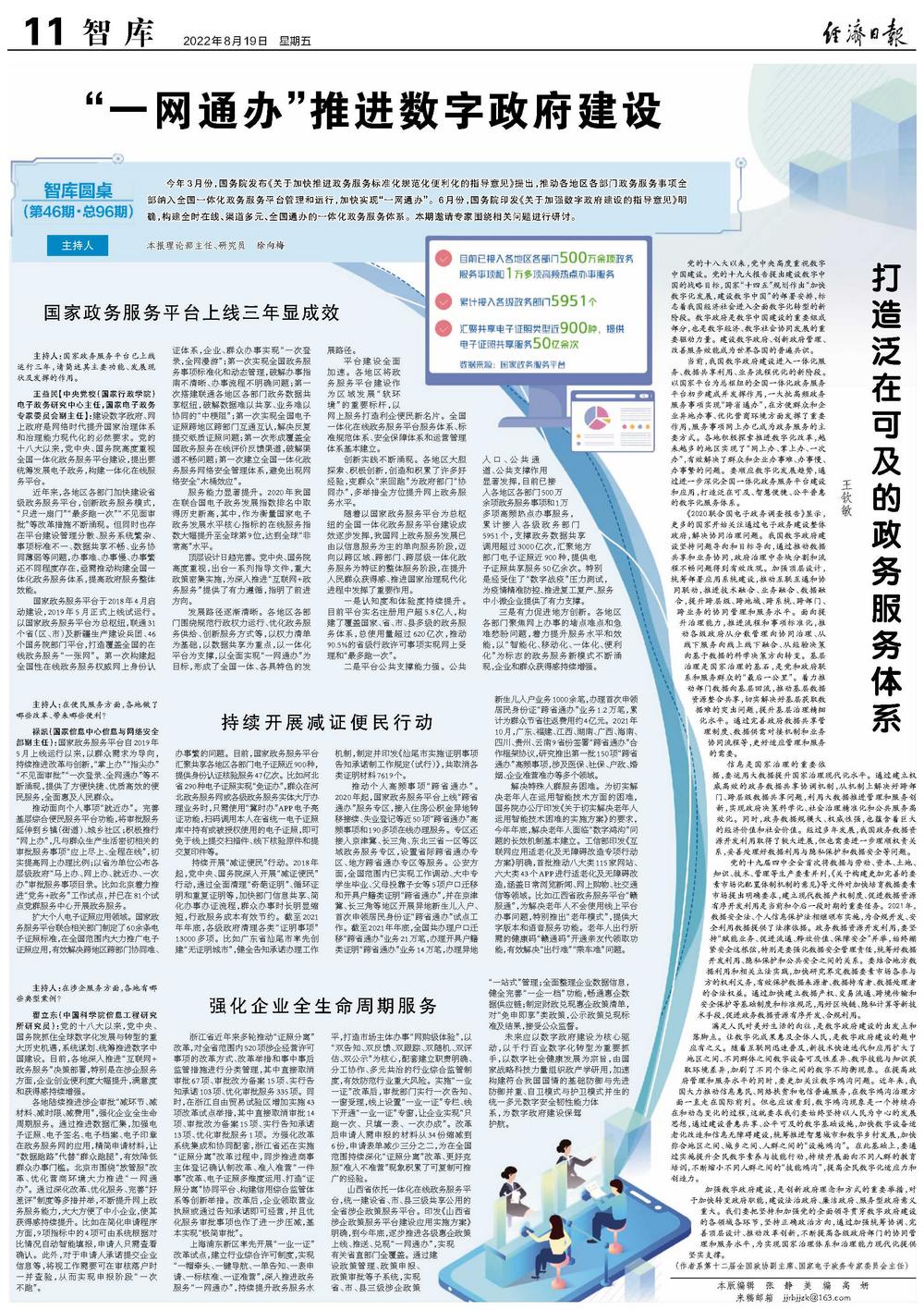 翟立东(中国科学院信息工程研究所研究员):党的十八大以来,党中央、国务院抓住全球数字化发展与转型的重大历史机遇,系统谋划、统筹推进数字中国建设。目前,各地深入推进“互联网+政务服务”决策部署,特别是在涉企服务方面,企业创业便利度大幅提升,满意度和获得感持续增强。