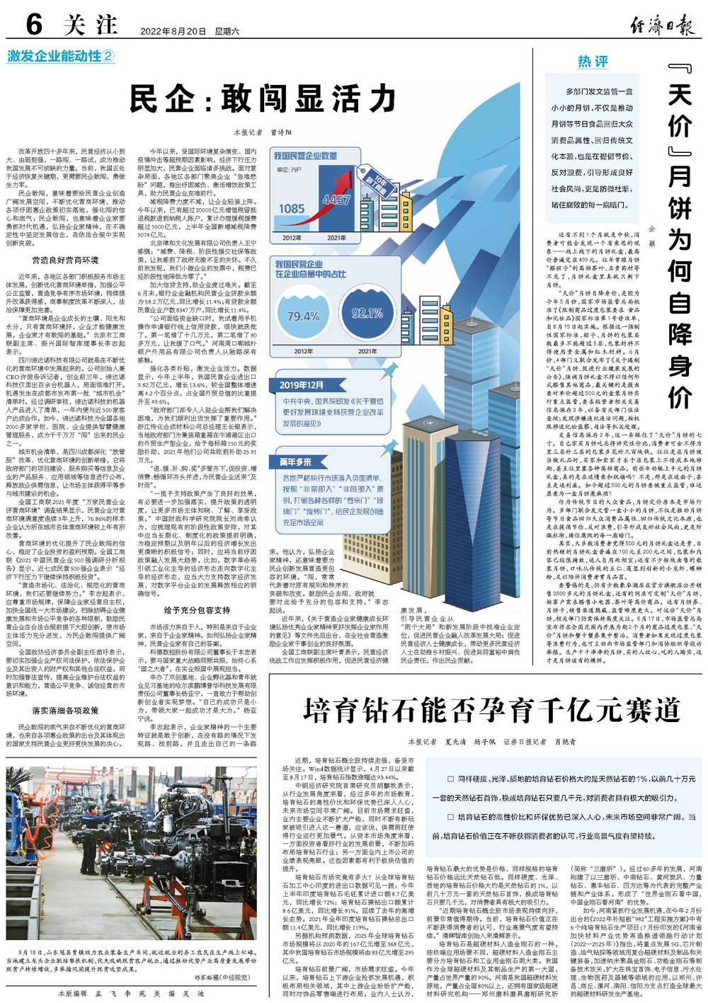 中钢经济研究院首席研究员胡麒牧表示,从行业发展角度来看,经过多年的市场教育,培育钻石的高性价比和环保优势已深入人心,未来市场空间非常广阔。目前市场需求旺盛,业内主要企业不断扩大产能,同时不断有新玩家被吸引进入这一赛道,应该说,供需两旺使得行业运行更加景气。从资本市场角度来看,一方面投资者看好行业的发展前景,不断加码布局培育钻石行业;另一方面业内上市公司的业绩表现亮眼。这些因素都有利于板块估值的提升。
