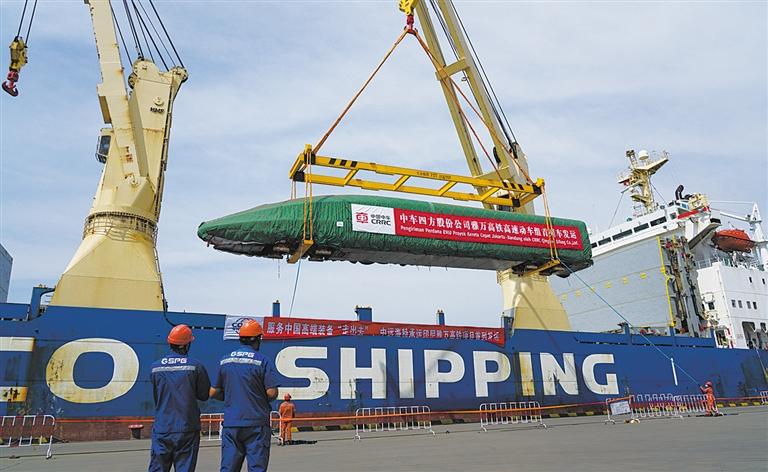 本报青岛8月21日讯(记者刘成)中国高铁走出去迎来重要一刻。21日,我国出口印尼用于雅万高铁的1组高速动车组和1组综合检测列车从青岛港发运,标志着我国首次出口的高铁列车正式启运。