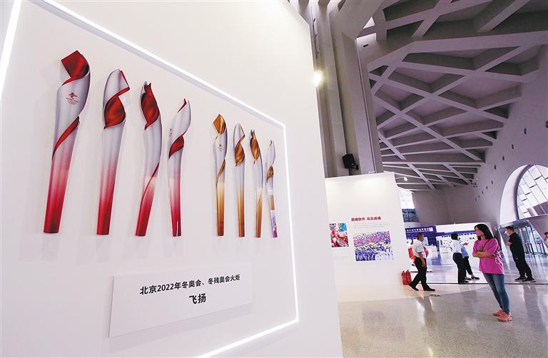 8月19日,观众在北京奥林匹克塔一层观看“北京冬奥精神主题展览”。由北京奥运城市发展促进会、北京市朝阳区人民政府联合主办的北京冬奥精神主题展览于18日在奥林匹克塔开展,展览首次集中展出了北京冬奥会徽章、奖牌、火炬等实物展品,系统展示了北京冬奥精神。