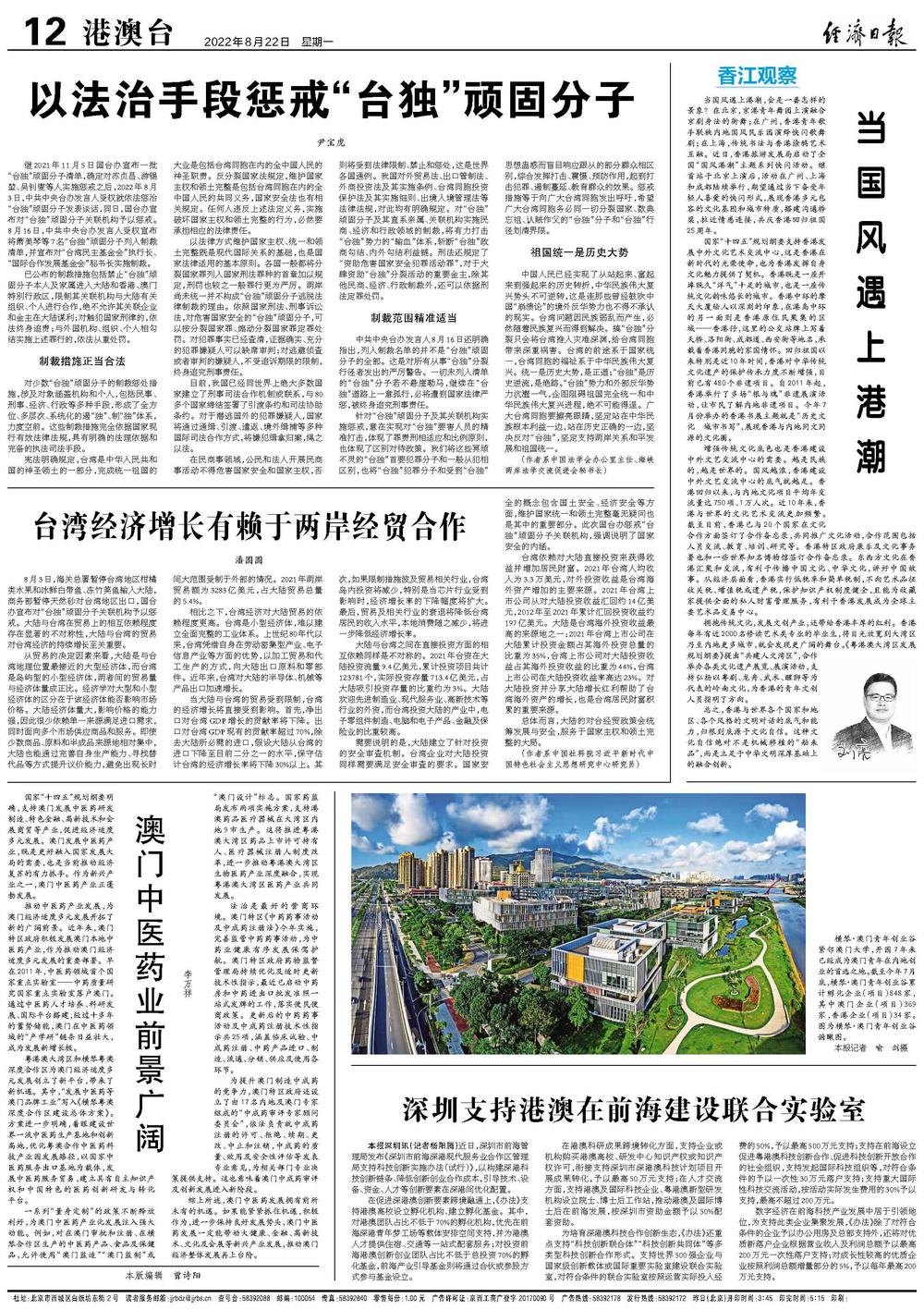 国家“十四五”规划纲要支持香港发展中外文化艺术交流中心,这是香港在新时代的光荣使命,也为香港发挥自身文化魅力提供了契机。香港既是一座开埠既久“洋气”十足的城市,也是一座传统文化韵味悠长的城市。香港中环的摩天大厦给人以深刻的印象,在港岛中环的另一面则是香港原住民聚集的区域——香港仔,这里的公交站牌上写着天桥、洛阳街、成都道、西安街等地名,承载着香港同胞的家国情怀。回归祖国以来特别是近10年时间,香港对中华传统文化遗产的保护传承力度不断增强,目前已有480个非遗项目。自2011年起,香港举行了多场“根与魂”非遗展演活动,让市民了解内地非遗项目。今年7月份举办的香港书展主题就是“历史文化 城市书写”,展现香港与内地同文同源的文化圈。