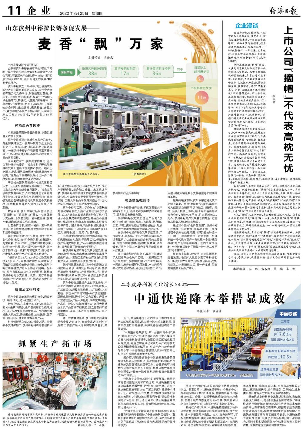 山东省滨州中裕食品有限公司(以下简称:“滨州中裕”)对小麦等原料深度开发、综合利用,不断延长产业链,将一粒粒小麦“变成”500多种产品,让田间地头的麦香“飘”到千家万户。