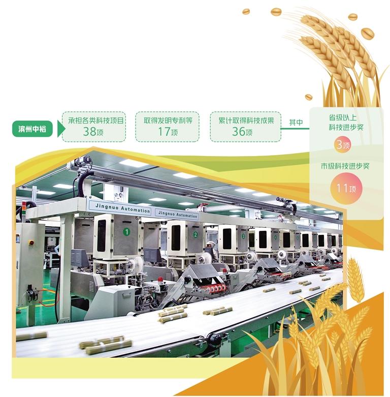 凭借科技研发优势,滨州中裕承担各类科技项目38项,取得发明专利等17项;持续开展新型技术研究、产品开发等工作,累计取得科技成果36项,其中省级以上科技进步奖3项,市级科技进步奖11项。