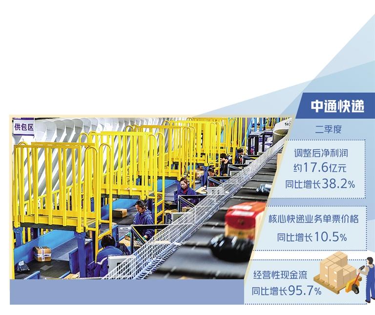 分拣作业是物流输送中的重要环节。依托逐渐完善的基础设施和产能优势,中通快递推行的多项降本提质增效举措效果也日益凸显。这从中通快递近日发布的2022年第二季度财务报告中得到印证。财报显示,二季度,在保持高水平客户满意度的同时,中通快递实现盈利增长,调整后净利润约17.6亿元,同比增长38.2%,核心快递业务单票价格同比增长10.5%,经营性现金流约38亿元,同比增长95.7%。