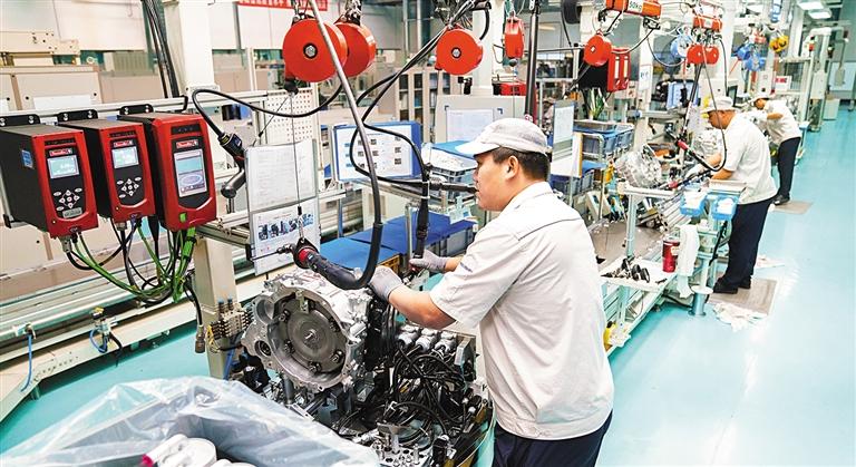 作为我国同时拥有汽车发动机、手动和自动变速器以及增程动力系统的研发及生产基地,哈尔滨东安汽车动力股份有限公司2022年前7个月生产经营工作取得了积极进展。1月至7月,该公司在国内独立汽油发动机生产企业中,汽油发动机销量排名第一。图为生产车间内工人在生产作业。新华社记者 王 松摄