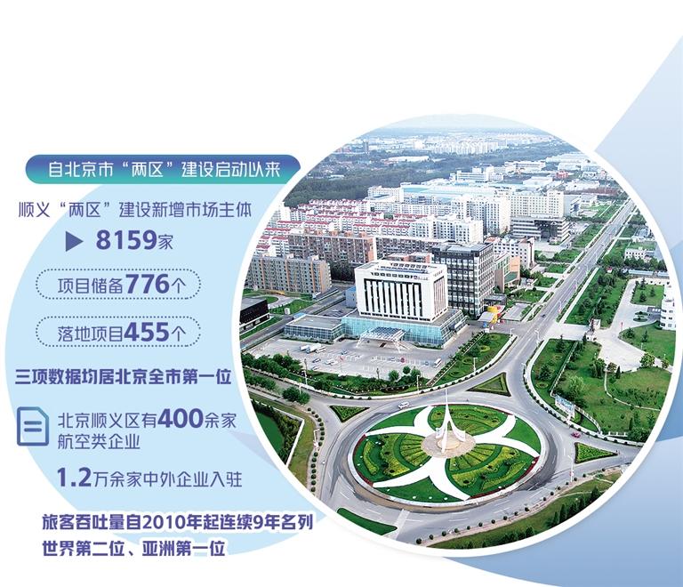 较为完整的航空全产业生态链条,基础扎实的临空产业体系,正吸引着一批企业的目光。今年以来,全球最大医疗保健集团强生公司在综保区设立强生制药有限公司,布局医药贸易;国家级新型基础设施“星火·链网”超级节点(北京)在顺义上线;民生理财、农发基础设施基金等20个优质金融项目相继落户。据统计,自北京市“两区”建设启动以来,顺义“两区”建设新增市场主体8159家,项目储备776个,落地项目455个,三项数据均居北京全市第一位,成为临空经济区的产业驱动引擎。