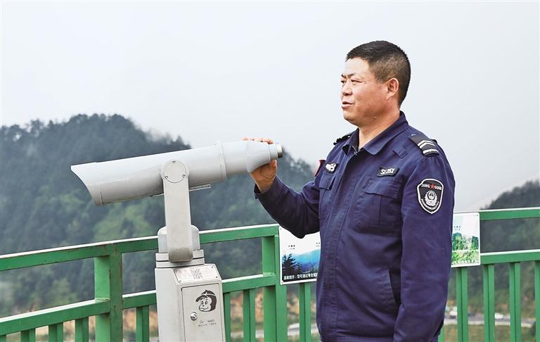 8月24日,在湖北神农架林区神农顶民兵哨,护林员王大志正在监测森林火情。该民兵哨主要担负方圆104万亩自然生态资源的防火瞭望、资源管护等任务,自1985年10月建立以来,护林员一直为保护神农架森林资源默默奉献。王大志是第七任护林员,在他担任护林员的7年间,该区域未发生一起森林火灾。罗永斌摄(中经视觉)