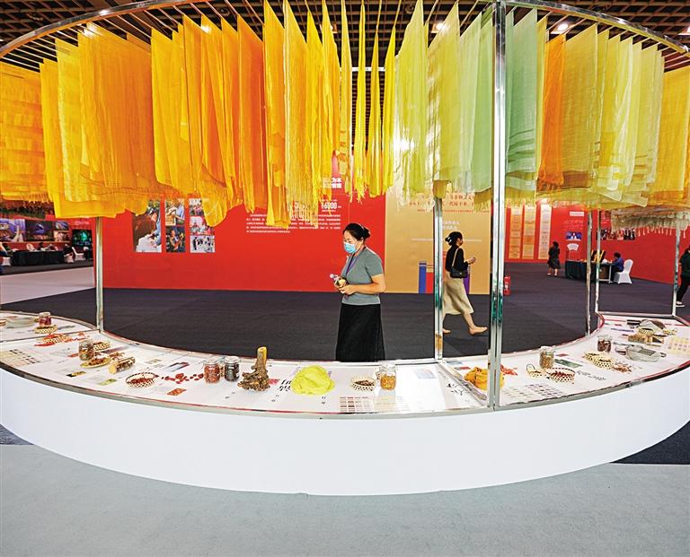 8月25日,市民在山东济南舜耕国际会展中心参观第七届中国非物质文化遗产博览会展览。本届博览会以“连接现代生活绽放迷人光彩”为主题,共有全国各地332名非遗传承人、284个非遗项目参展参演。徐 舟摄(中经视觉)