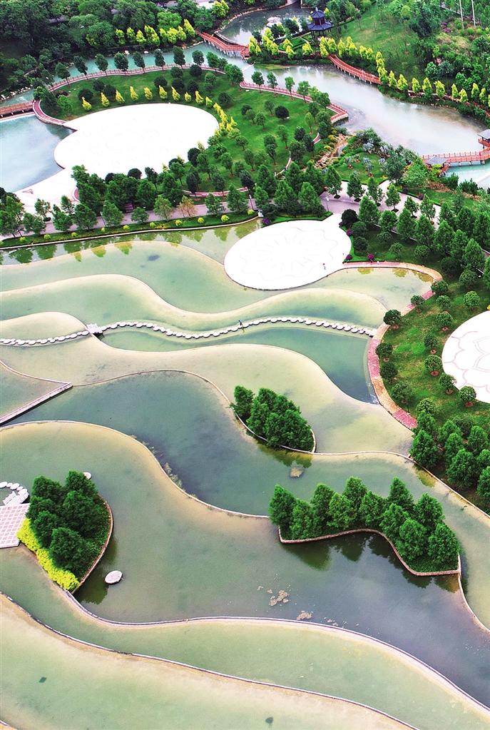 八月二十八日,云南省弥勒市甸溪河湿地公园七彩云池景美如画。近年来,弥勒市加大投入治理甸溪河,经过一体化河道修复治理,当地水生态环境明显改善。普佳勇摄(中经视觉)