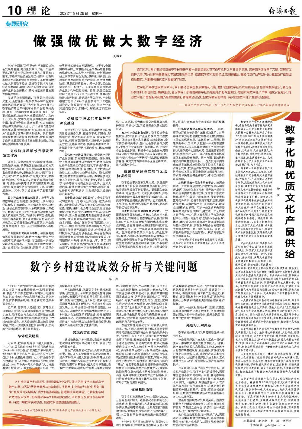 近年来,国家数字经济创新发展试验区建设加快推进,很多地区也陆续出台相关实施方案和行动计划,充分发挥海量数据和丰富应用场景优势,积极谋划、努力做好“数字产业化”和“产业数字化”两篇大文章,取得明显成效。今年以来,尽管受新冠肺炎疫情、地缘政治冲突等诸多不利因素影响,但总的来看我国经济运行仍顶住压力、延续恢复态势。其中,数字经济发挥了重要支撑作用。