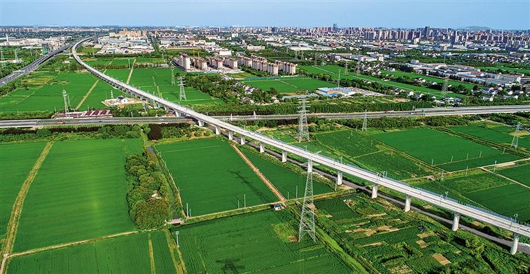 近日,由中铁二十二局负责施工的南沿江城际铁路张家港段铺轨以下工程全部完工,为确保先铺段按期铺轨及开通运营节点打下了坚实基础。南沿江城际铁路西起南京南站,是国家重点工程沪汉蓉快速客运通道的重要组成部分,是长三角核心区域的骨干城际线。同时,它是沪宁通道的第二条城际铁路,主要承担沿线通道内和沿线与沪宁主轴城市间的城际客流,以及浦东地区与南京、镇江、常州及部分沪汉蓉与苏南、上海间跨线客流。 侯钦佩摄(中经视觉)