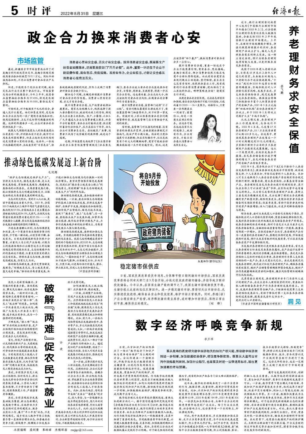 推动绿色低碳发展,要加快推动新旧动能转换。一方面,要在加强生态环境保护的基础上推动经济发展,坚持在发展中保护、在保护中发展,倒逼经济加快转型,推动传统产业智能化、绿色化技术改造,要脱下“满身灰”、披上“生态绿”;另一方面,要抢抓未来产业发展机遇,加紧布局清洁能源、数字经济等新兴绿色产业,力争形成越来越多新的经济增长点,为高质量发展注入强大绿色动能。
